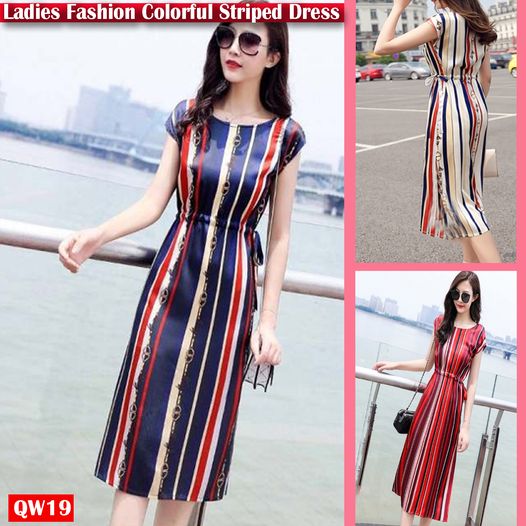 QW19 Ladies Fashion Colorful Striped Dress